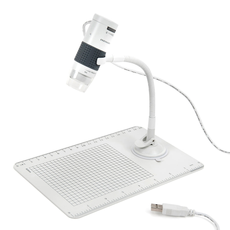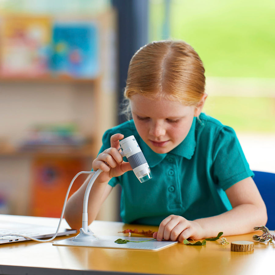 A digital microscope with 250x magnification and USB connectivity, ideal for classroom use.