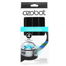 This is a 4-pack of black markers for use with Ozobot Evo or Ozobot Bit. The Ozobot Markers have angled tips to make it easy to draw lines optimised for Ozobot robots to follow. Add color codes with Ozobot Colour markers or code stickers for programming on paper. The Ozobot Markers are washable and non-toxic and the angled tips make color coding easy.
