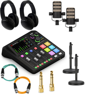 The RØDECaster Duo is the ultimate compact audio solution for podcasters and content creators. The Rode PodCaster Duo Starter Kit teamed with Moki Nero Headphones is the perfect Podcasting set up for two users. Make your choice of having Studio Microphone Boom Arms for that perfect studio experience, or using Desktop Microphone Stands to maximise your space.