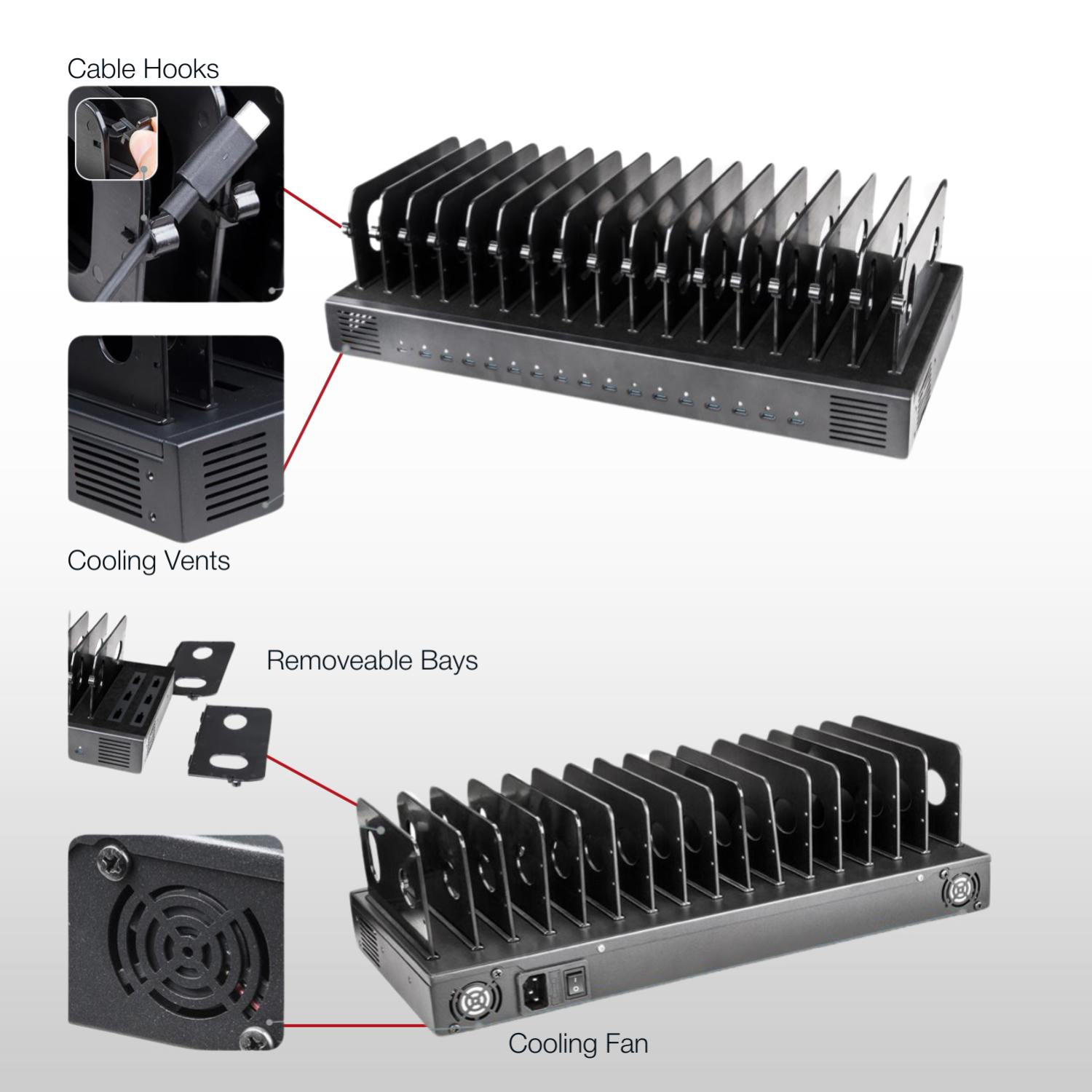 Maximise productivity with a powerful 1000W charging station that can simultaneously charge up to 10 Macbooks at 100W, 16 Notebooks at 60W or a combination of smartphones, tablets, and USB-C devices.