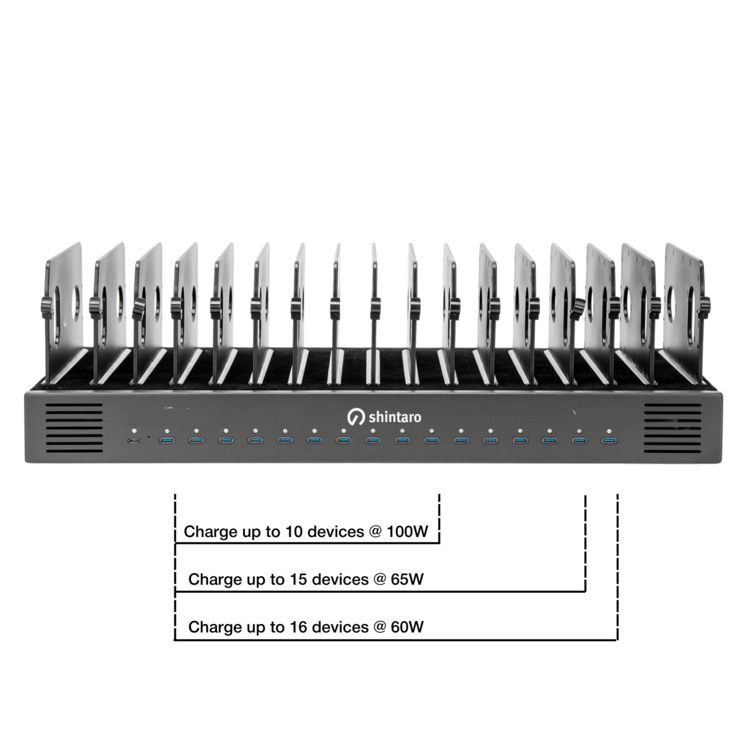 Shintaro 16-Port USB-C PD3.0 1000W GaN Charging Dock for Smartphone, Tablet, & Notebook Devices & Smart Power Management via InnovateCharger App